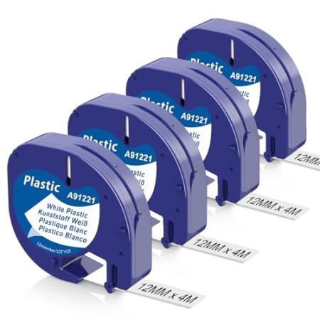 4x Compatible pour Dymo Letratag Ruban 12mm x 4m Compatible pour Dymo Letratag 200B LT-100H 100T Letratag XR, Compatible pour Dymo Ruban Plastique Noir sur Blanc