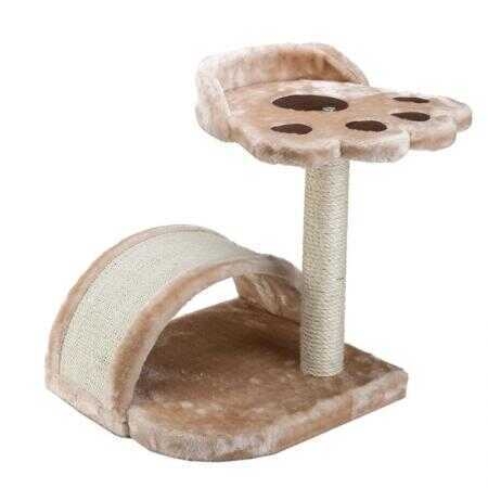 Petit arbre pour les chatons avec tronc en sisal naturel, plateforme recouverte de peluche douce et moelleuse et jouet accroché à un élastique.
