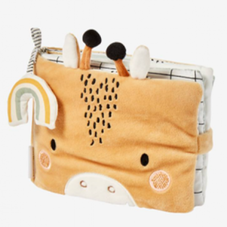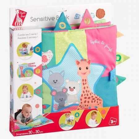 Un grand livre en tissu à l'effigie de Sophie la girafe et ses amis pour éveiller tous les sens de bébé !