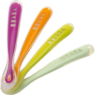 De jolis petits ustensiles colorés pour que j'apprenne à bien manger sans en mettre partout et sans abîmer mes quenottes et mon fragile petit palais.